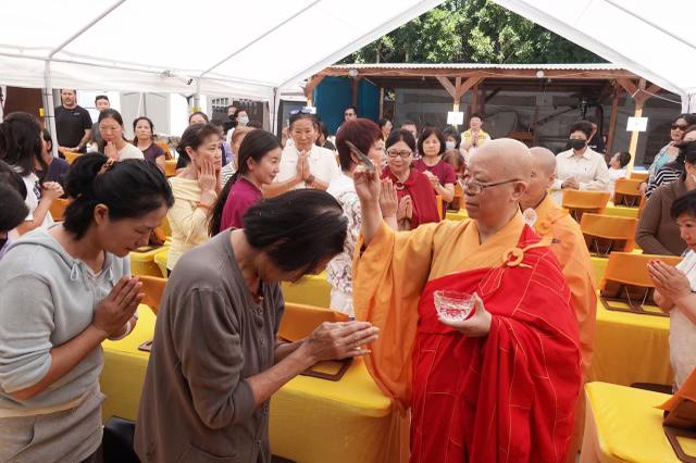 法會圓滿時,若慧孺尊為大眾施灑加持法水。