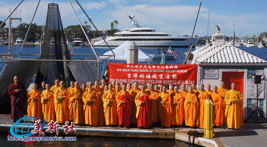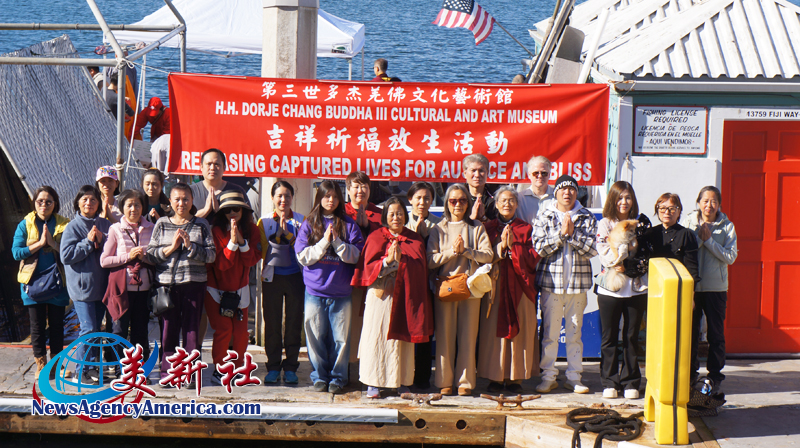 第三世多杰羌佛文化藝術館於1月18日在洛杉磯 Marina Del Rey 舉行大型放生活動,法會禮請世界佛教總部副主席證達教尊主法。